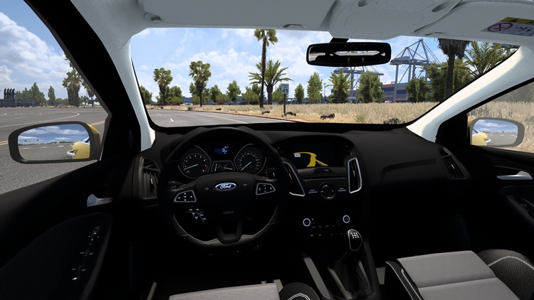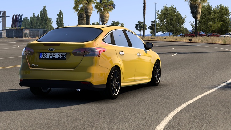 This mod adds the Ford Focus MK3 car to ATS version 1.57. It includes normal and open pipe exhaust sounds, sedan and hatchback body styles, and customization options such as a sunroof, front and rear bumpers, and a spoiler. You can purchase the vehicle from the mod dealer.