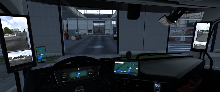 This mod, compatible with ETS2 version 1.57, replaces the in-game navigation systems with Apple’s iOS Maps interface. It enables the use of Apple Maps on both windshield-mounted navigation devices (small and large) and on built-in digital dashboards and console screens found in modern trucks such as Volvo and DAF.