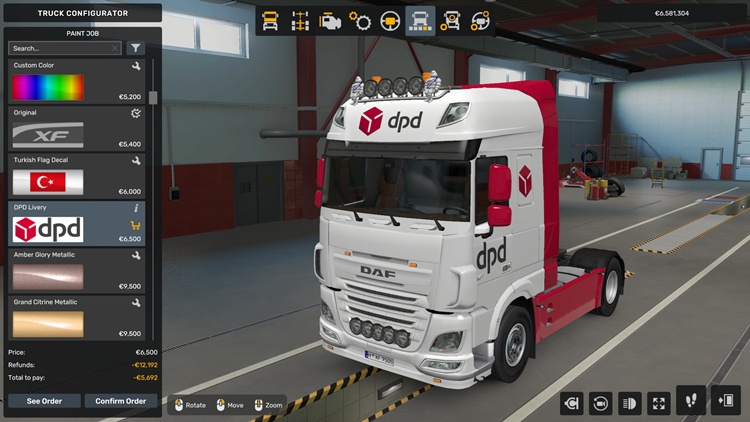The DAF DPD Skin Pack for ETS2 1.57 adds DPD paint jobs for the DAF XF 105 and DAF XF Euro 6 trucks. It has been updated for low cab Euro 6 models and works correctly with the tuning DLC.