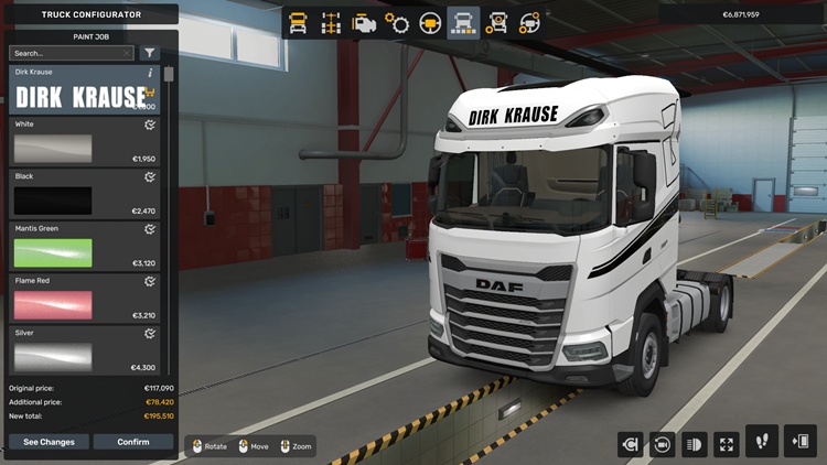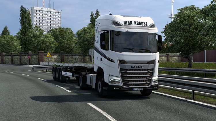 This is a German Dirk Krause GmbH skin mod for the DAF NGD 2021 and Volvo FH6 trucks, as well as the Krone Box Liner trailer in ETS2 1.57.