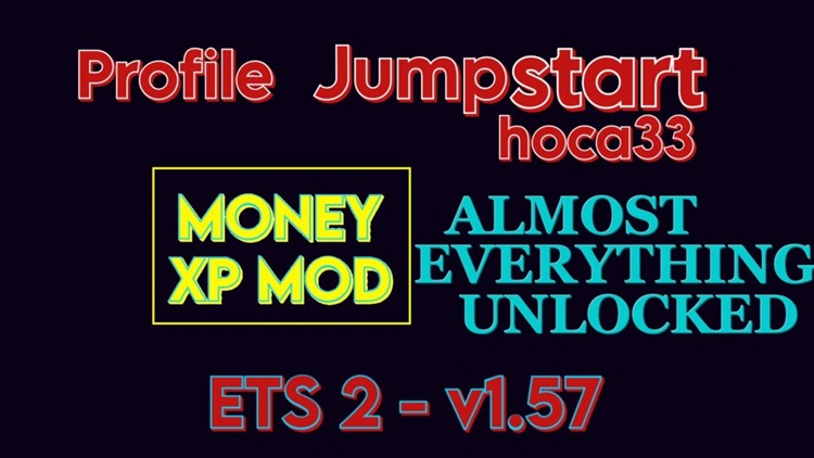 This is an unlimited money and XP mod for ETS2 1.57. It unlocks all garages, cities, tuning parts, and trucks in the game.