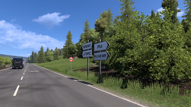 This is a small map mod for ETS2 v1.57 that adds the resort town of Pyla-sur-Mer, located on the Atlantic coast of France, to the game.