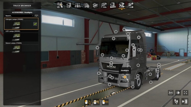 Added a choice of halogen or LED/xenon headlights for SCS trucks;