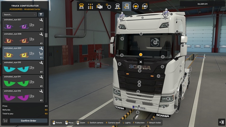 A-W LED Panel brings four new animated eye effects to your truck, giving it a whole different character on the road. Currently supports three trucks: Scania, DAF, and Mercedes-Benz!