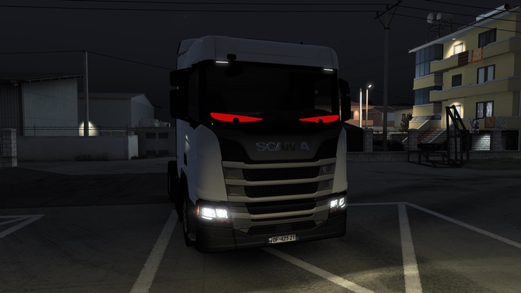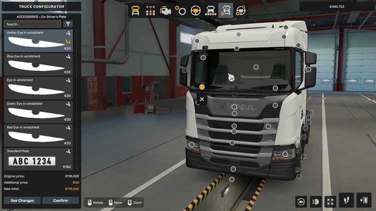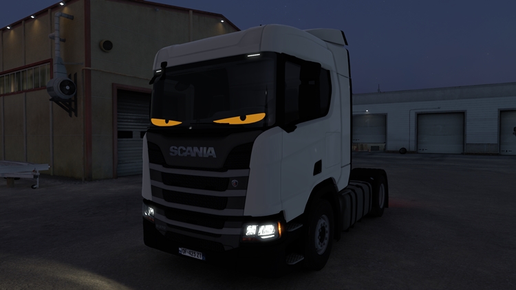 To attach the animated eye to the truck, use the license plate/name modification settings located at the lower left and right of the windshield.