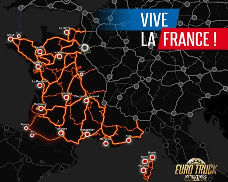 Brings France’s vast farmlands, nuclear power plants, and narrow rural roads into the game.