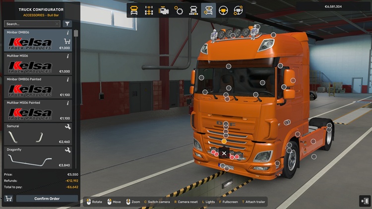 The mod adds new Kelsa truck accessories to the game: Roo bar, Bumper protection, Exhaust pipes and others.